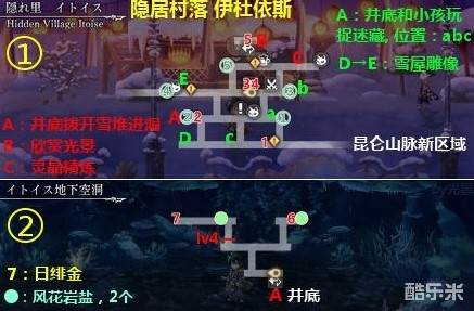 ③捉迷藏:在井底和小孩对话,分别到abc位置找到他,得到“形状适宜的石头”,结篇开精灵树宝箱会用到。