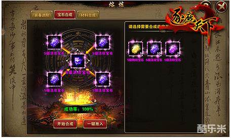 宝石恒久远,一颗永流传,为了宝石的属性,我们要将宝石不断合成更高级。可以使用两颗以上同类型宝石合成为高一级的同类型宝石,两颗合成成功率为50%,三颗合成成功率为75%,四颗合成成功率为100%,对于走在平地上也能摔跤的小编来说当然是四合一比较保险!