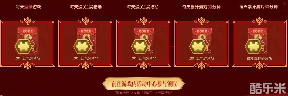 每日完成游戏内任务,还可以继续领取虎年红包碎片,合成新春红包!