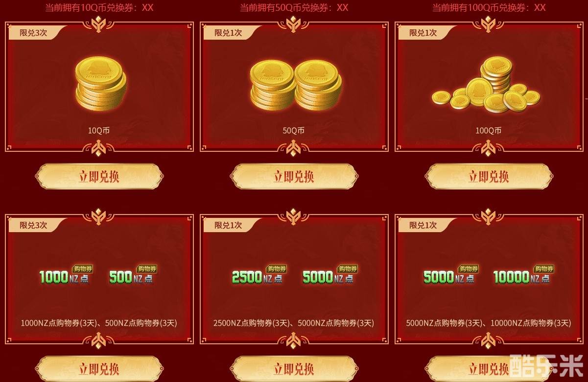 Q币每日限量,玩家可选择兑换对应的NZ点(有1.5倍加成哦!)
