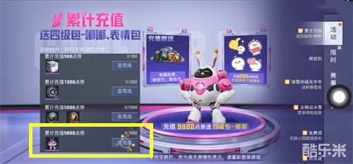 在【1月28—2月10日】期间,玩家累计充值9888点券,折合人民币988.8元,即可获得四级包嘟嘟。