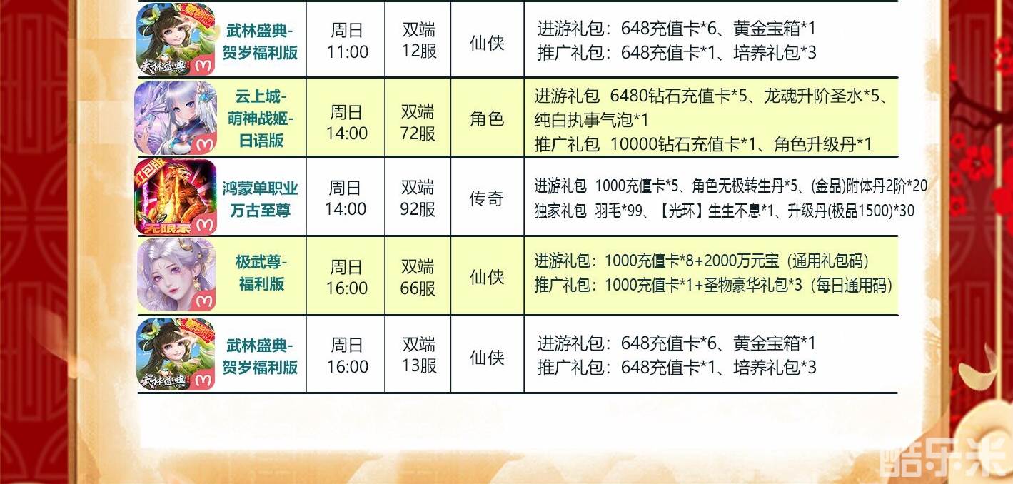 | 仙语奇缘-无限抽 | 天下55区( 苹果- 安卓) | 2022-01-30 10:00:00 |