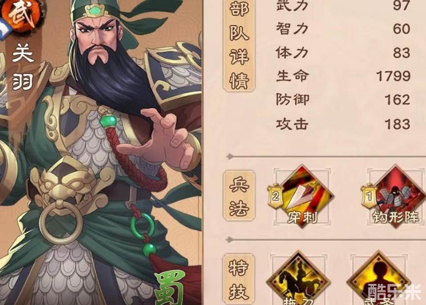 关羽规模需求较高,小编建议如果抽到关羽,或者比较喜欢蜀国可以一用。
