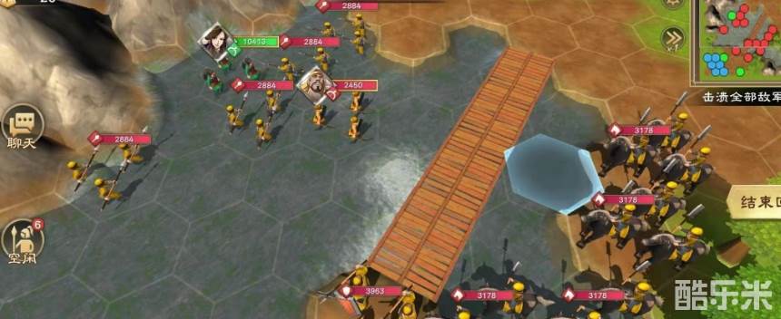 由于地形不是浅滩就是木桥,都对管亥减防,所以斩杀管亥是最有效的方法。只要集火管亥便轻松通过了。由于敌军数量较多,所以可以排骑兵或者盾兵去搅乱对方部队,冲乱阵型,然后其余集火管亥就行。