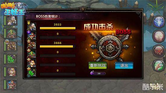 成功击杀后在屏幕的下方会有掉落物品的显示,地下城宝藏可以在物品栏点击打开获得相应金币。同时我们可以选择再次挑战或者退出。