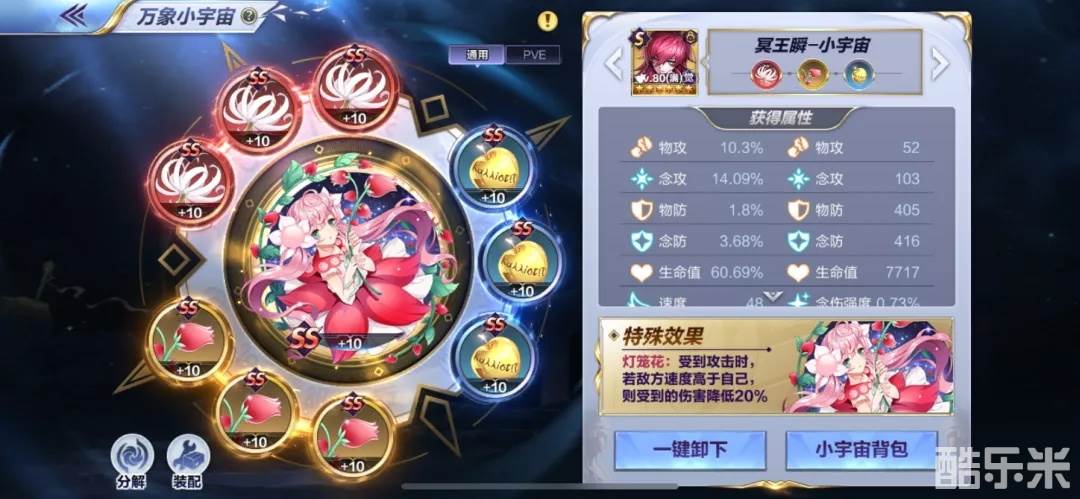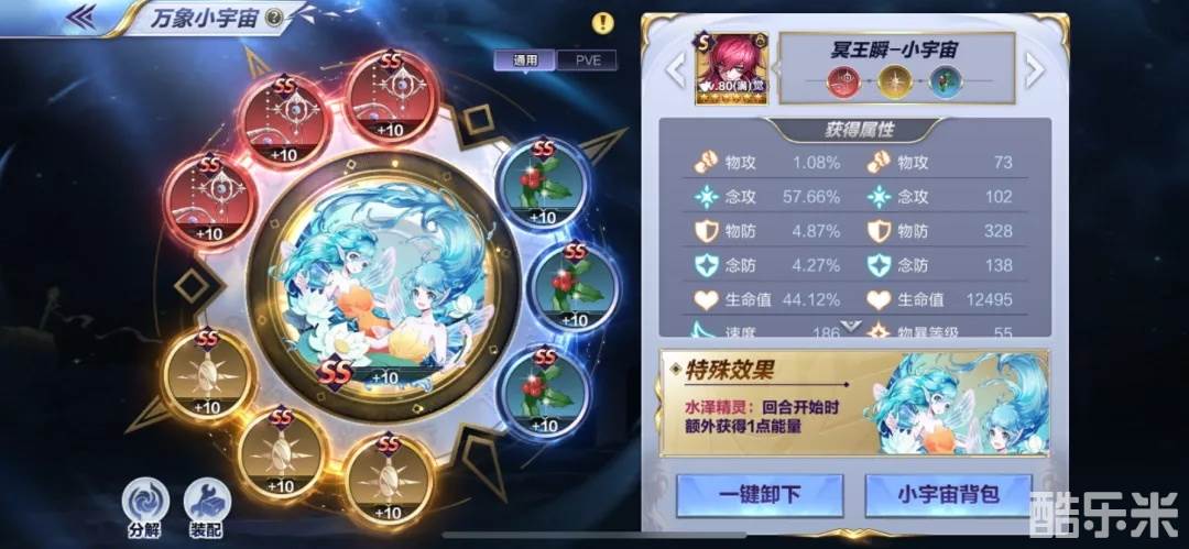 3、冥王·瞬有着强大的保护能力和双动能力,是比较容易成为敌方的集火目标的,生命值与数值防御可以让他活的更久,而效果抵抗则可以增加自身抵抗控制的概率;