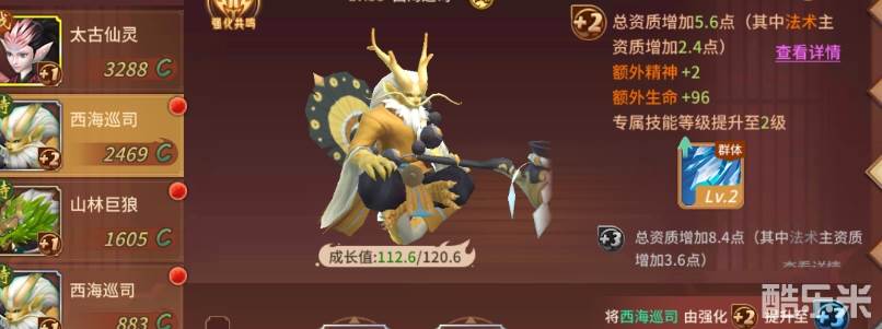 最后就是提升了, 既然消耗这么多的材料,提升也是很不错的。每次强化之后宠物专属技能可以获得升级,同时资质也会提升,还会获得一些额外的属性加成,提升是很多的。