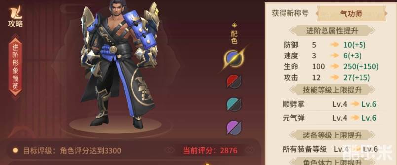 那么在达成以上的几个要求之后,玩家点击进阶界面中的按钮就可以完成操作了。在进阶之后,角色的形象不仅可以获得改变,同时属性以及技能等级上限也是可以获得提升的。