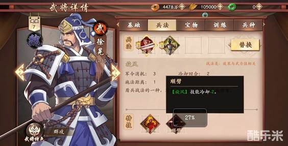 作为曹操麾下的五员大将之一,徐晃在《策魂三国》中能够依靠【旋风】兵法,对自身周围一圈的敌人打出高额的群体输出。他的特技【勇武】,在士气大于4时,能够将【旋风】的伤害提高140%;而另一特技【顺劈】,能使【旋风】技能冷却-2。搭配提升士气的辅助武将后,徐晃甚至能化身杀戮武器,而碎骨锤更是徐晃的必备神器哦!