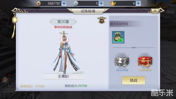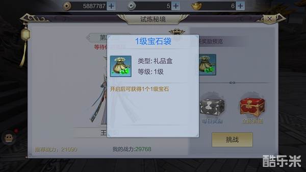 在试炼秘境中,每一重都有一个相应的怪物,通关当前层数的秘境就可以获得宝石袋奖励,开启宝石袋随机获取宝石。