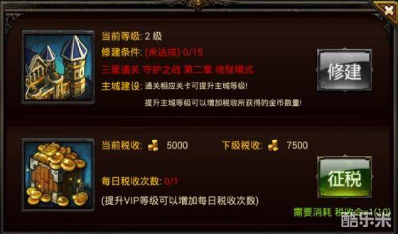 3、征税。只要你有征税令就可以对城镇进行征税。小编提醒大家,只要提升VIP等级就可以增加每天的征税次数哦!