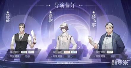 各位女明星看一下导演偏好再进行下面关卡的片段选择,不要错过想选择的导演了~这里有一个小tips 可以看一下,如果想提升试镜成功率,有两步要走。第一步查看导演的喜好的题材,如果有他们偏好题材的主力面具,一定要优先选择他们