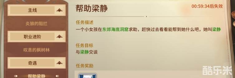 奇遇任务的机制:任务的玩法机制和常规任务有一定的区别,常规任务都是一些跑腿的,而奇遇除了要跑腿之外还要做一些道具收集或者说战斗类型的操作,难度方面是有一定提升的。还有一点大家要注意,奇遇任务在触发之后会显示一个小时的倒计时,如果玩家没有在一个小时内接取并完成的话,那么这个奇遇任务就会消失,所以说是有时间限制的。