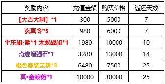 1.活动时间内,充值达到指定金额,即可购买特惠商品;