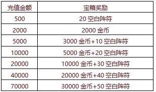 【活动内容】金币奖励满额返还,额外赠送大量空白阵符,天地水火,风雷山泽,奇门阵符,尽收囊中,一切尽在本期月末超值大放送。
