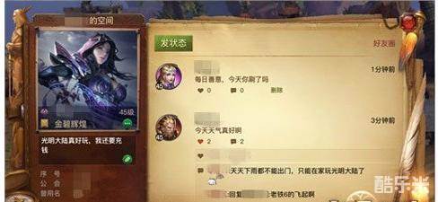 周五风语系统核心的好友空间玩法将在全服开启。好友空间将可以会全方位展示勇士们的个人信息,个性签名最能表达自己个性的一面,而头像、姓名、职业、等级、称谓等信息也将全方位展示。勇士们还可以在自己的空间里发表状态,记录游戏感受和心情。而通过好友圈,还能关注并回复好友状态,为他们点赞。如果你在游戏中遇到了趣味相投的人,进入彼此的空间进行深度了解,也能让你们更快熟悉。