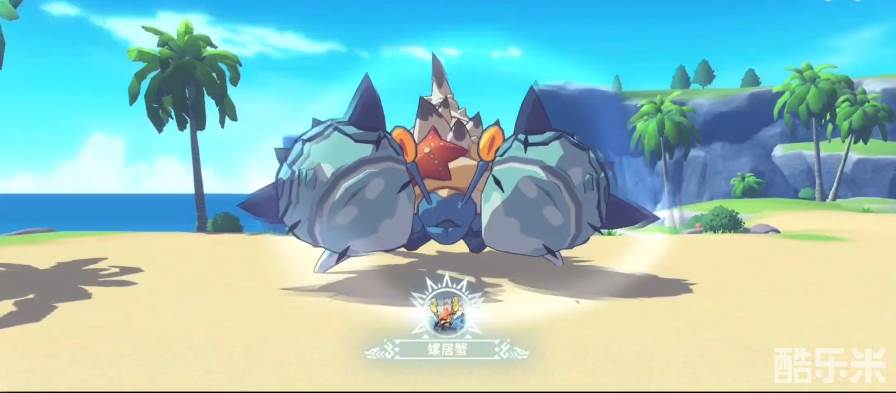 当螺居蟹抬起两条前足时,就说明它要使用直撞攻击,此时玩家只要离开它的正面就可以完美避开此次攻击。而当螺居蟹抬起两条侧足时则说明它要使用横冲攻击,玩家需要离开它的侧面。这两个攻击都很好躲但是要留意场地,避免躲避时碰到气泡。