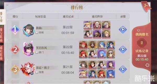 楼主宗师,主c胖子全攻评分240w(活动建议全爆伤),6人队最高评分700w,这个评分完全可以用8人队甚至6人队通关22层,所以大家都有通关的潜力。