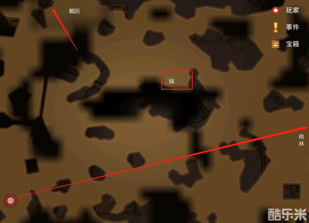 返回第一张图再去找格林,他会让你把工具箱交给戴因,戴因就在左上角。在去找戴因之前最好先去做饭,这样我们准备好了充足的食物,就可以直接通过戴因的车进入第三张地图了(第三张地图没有做饭的锅),比较节省时间,省得来来回回的跑。