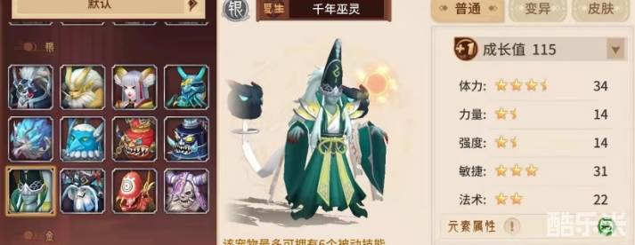 千年巫灵:它是地灵珠元素属性,有两个主动技能,灵生不息,复活场上的死亡单位,对目标造成回复属性65%的恢复效果,若目标未死亡,则恢复目标回复属性32%的生命。惩戒之光,对一个敌方单位造成回复属性56%的伤害,攻击复生系时附加20%伤害。