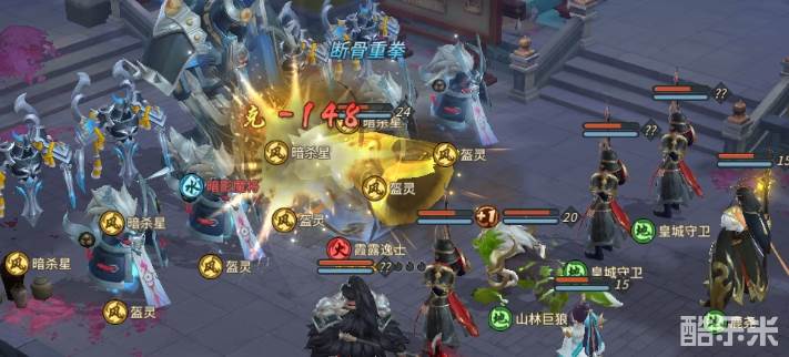 在来就是暗杀星这个单位,这个单位的单体输出能力是非常高的。如果说己方有残血的话,那么这个单位的属性是可以获得提升的。这里就要使用集火的功能了,加上之前选择的宠物连击技能,可以在两个回合内将这几个暗杀星给解决掉。