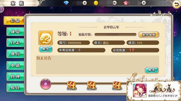 有小伙伴的陪伴,异次元的生活才会更加精彩!想要与更多同好扎堆,那就不妨建立自己的家族或是加入其它家族吧,成为团体中的一份子。家族中不仅可以领取到丰厚的福利,还有诸多精彩的小游戏,最最关键的是,有了家族的撑腰,异次元冒险什么的,将会更加轻松!