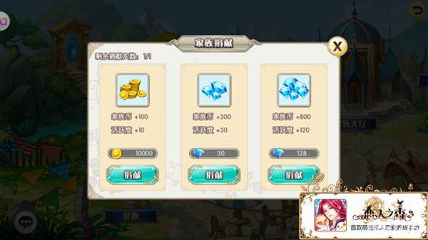 家族捐献是提升家族经验的最好去处,每天有一次捐献机会,每次捐献都能收获一定家族经验值,当家族经验值到的2级时就可以去观看王子们赛跑啦,经验值达到3级就可以开启家族互助模式啦!想要开启更多地带,那就赶紧去为家族捐献一份力量吧!