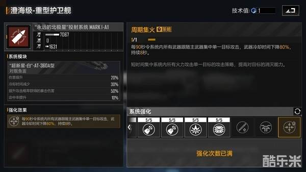 2、后期可以把命中率去掉换成周期集火的策略技能,因为后期的大型舰船比较多,不需要频繁锁定切换目标,作战时间也偏长,策略技能有机会发挥出最大的作用,但是前期作战时间短,小型舰船多,需要经常切换目标,策略技能难以发挥真正的作用。