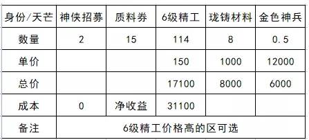 对于6级精工价格高的服务器来说,天芒是被忽略的好身份,精工高于200就能比大部分身份获得银两更多。