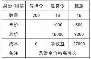 如果你们区悬赏令价格高于1500,是一个可以选择的身份,铸神令锦上添花。