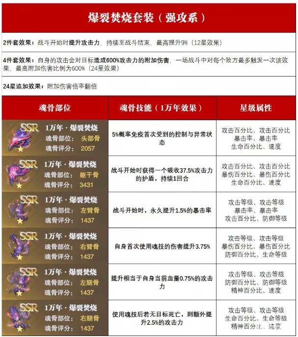 我们看到的是强攻系中的【爆裂焚烧】魂骨套装,这个魂骨套装大致有以下几个特点: