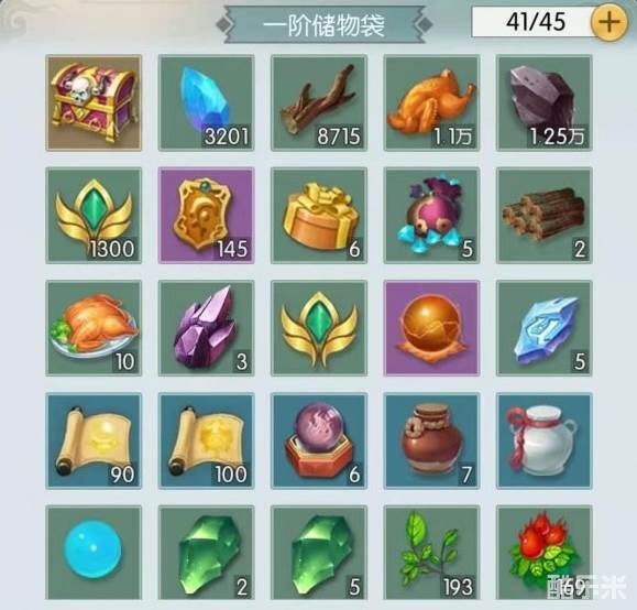需要注意的是,在游戏中储物袋其实就是背包,背包的位置就在游戏主界面左下角第一个的“储物”选项,点击进入,即可查看储物袋中的道具和物资。