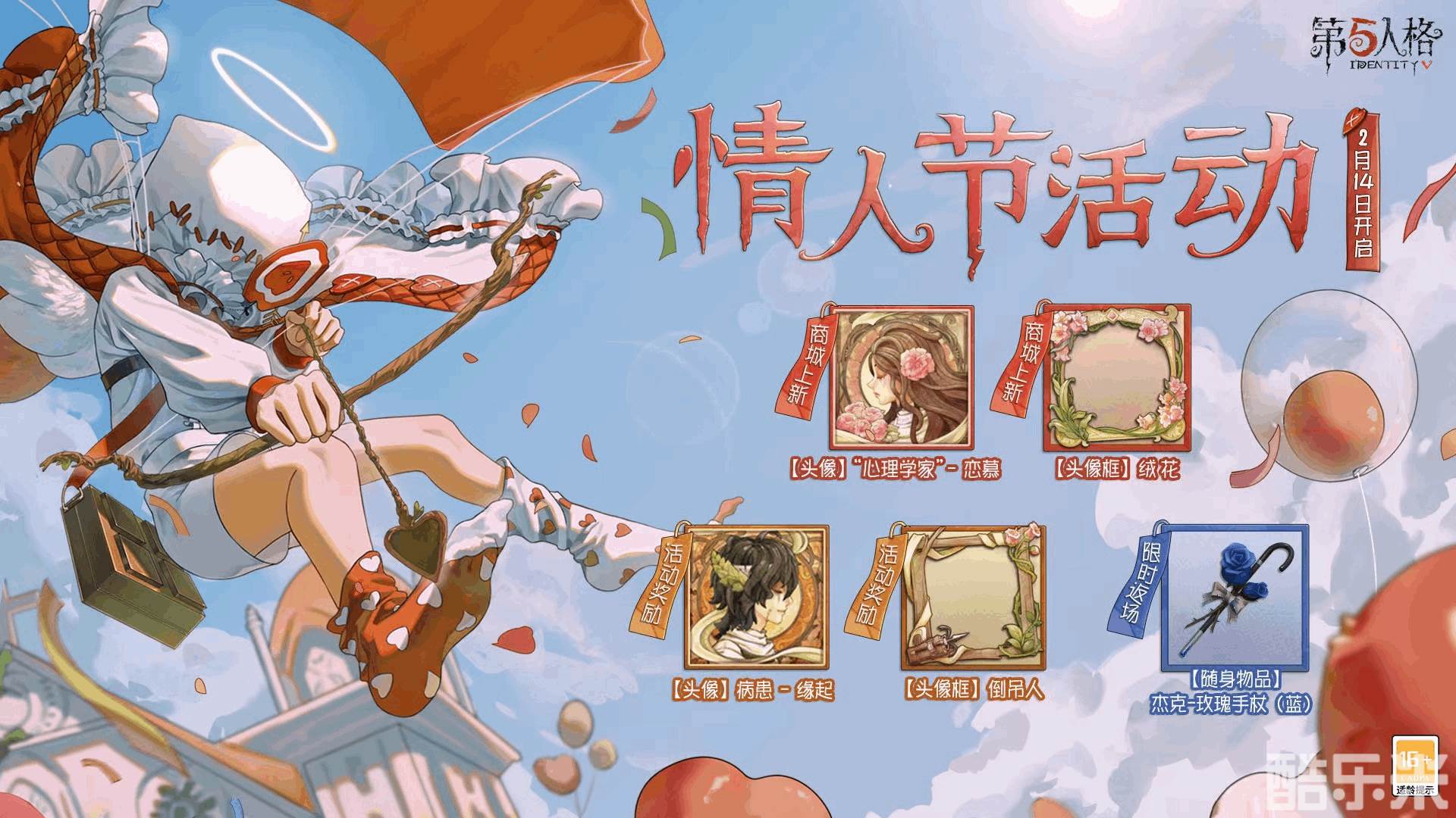 2月14日至23日,玩家们参与情人节活动,完成各类任务,即可获得头像框倒吊人和头像病患-缘起。倒吊人头像框左下角的勾爪发射器与右上角的鲜花形成鲜明对比,寓意着爱的残酷与温柔,双方的自我牺牲奉献,能否如愿以偿地换来回报,获得真正的安宁与快乐?