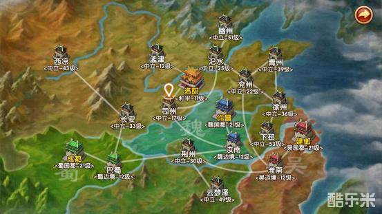 三国有各自的势力范围,吴国的势力范围位于东部沿海一带,国都为建邺;蜀国地处西部内陆巴蜀地区,国都在成都;魏国雄踞长江以北的广大中原地区,国都为许昌。三国各霸一方,相互对峙,形成鼎立局面,我们可以根据自己的喜好和心情自由选择。