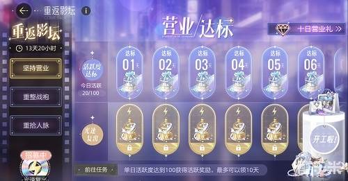 2、坚持营业,完成每日任务,达到100点活跃度时可领取一次奖励,共计可领10天。