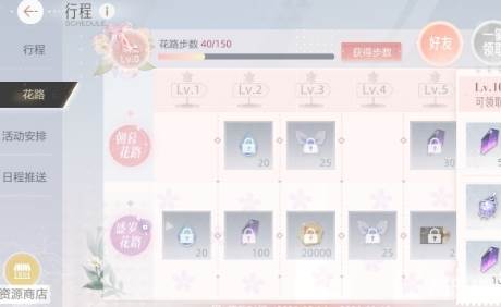 花路里面的奖励分为两种,第一种升级普通奖励,只要等级达标就能领取,奖励包括元气、星币、登台影像、星石、灵感。