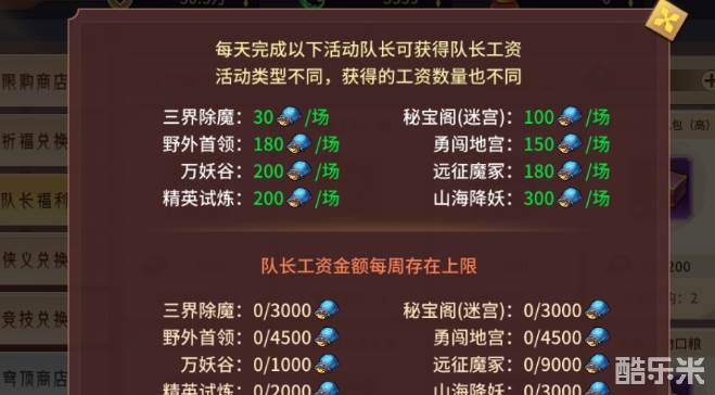 队长工资这个玩法要在四十级的时候才会开启的,对于等级还是有一些要求的。那么在开启之后,这个奖励可以通过多个方式来获得。但是大家要注意,途径都是一些组队的挑战玩法,而且玩家必须要是作为队长才可以得到奖励的。