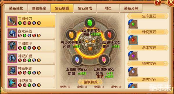 每一件装备同种宝石仅可镶嵌一件,总共有5个镶嵌位。