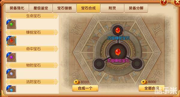 三国2宝石分为以下几种:血煞、遁甲、锋锐、生命、闪避、法防、物防、命中8种。