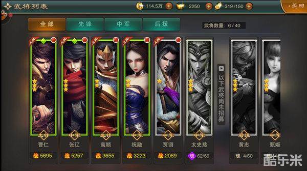 在我们选择阵容的时候,根据武将的特点与技能进行搭配的话会有事半功倍的效果,一个好的阵容应该兼顾输出、防御与控制,正如下面的这套阵容: