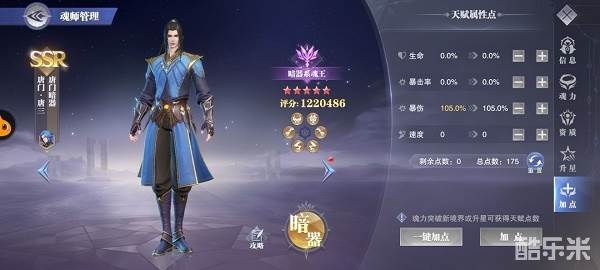 2、加点的话老派是把他当成主c用的,加点推荐全加【暴击伤害】。