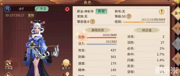 其实在玩家刚开始游戏的时候,主页面会给玩家一个选择,有6个人物,看玩家选择哪一个,而每个人物又有4个职业选择,就比如说玩家选月照君,那她可选的职业是神射手、星术师、医师、巫师,这里玩家选神射手,也就是输出位,选定之后由玩家来好好经营角色,那么就涉及到了我们的战斗技能。