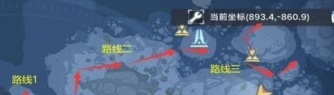 1、雀头薯:雀头薯生长的位置比较的分散,可以按照图中的路线寻找。