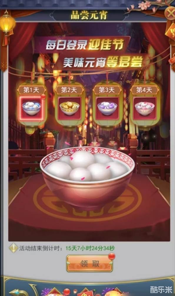 活动期间,每天登录即可领取对应累登天数的元宵好礼。