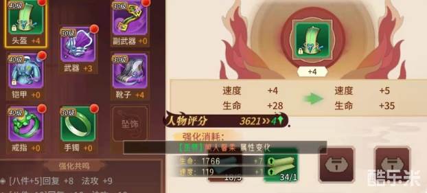 最后要介绍的就是装备强化的共鸣属性,这个简单来说,就是八个位置的装备强化到一定等级之后带来的强化提升,最低八个位置的装备,需要达到5级才可以引发强化共鸣。