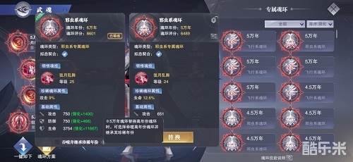 7、魂环吞噬当对已经突破的魂环珍稀属性不满意时,可以使用满意属性的五万年魂环进行吞噬高年份魂环并继承其珍稀年份(这个操作会使得原本的魂环消失,简单说会损失一个五万年魂环)。