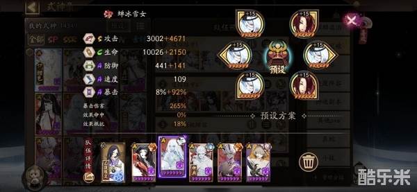 2、雪:青女房/伤魂鸟,攻攻爆,尽量+0速,可以控对面的SP花