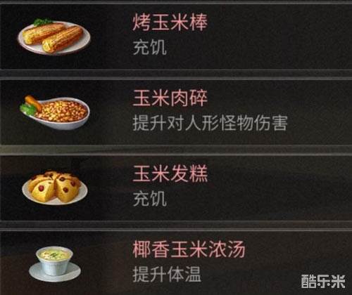 玉米肉碎:肉、玉米(提升对人形怪物伤害)
