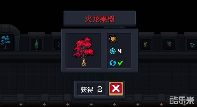 宝石树,魔力花,仙人掌这些也可以在神秘商贩那里购买获得(以前见过,不知道现在能不能,我好久没见到了),这些也可以在游戏里的宝箱房间获得,也可以在(原始关卡)1–5的BOSS圣诞树人击败后几率掉落。