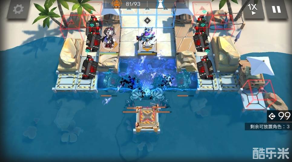 接着是下一波技能开启的时机,可以看到左右两边出了盾兵,中间的鱿鱼先动,鱿鱼比较脆平A是足够的,第一个盾兵入水就可以开技能了,然后自信挂机到结束即可。